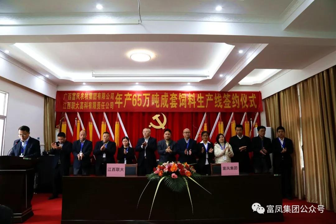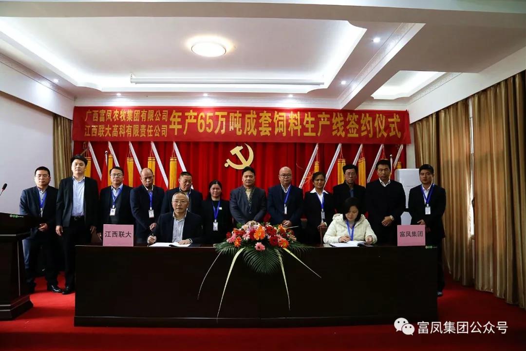 在2019年新春即将到来之际,12月14日,成人看片APP集团留肖总部成人看片APP学院里一派欢庆热烈的气氛中,广西成人看片APP农牧集团有限公司与江西联大高科有限责任公司隆重举行65万吨成套成人手机看片你懂的生产线签约仪式。
