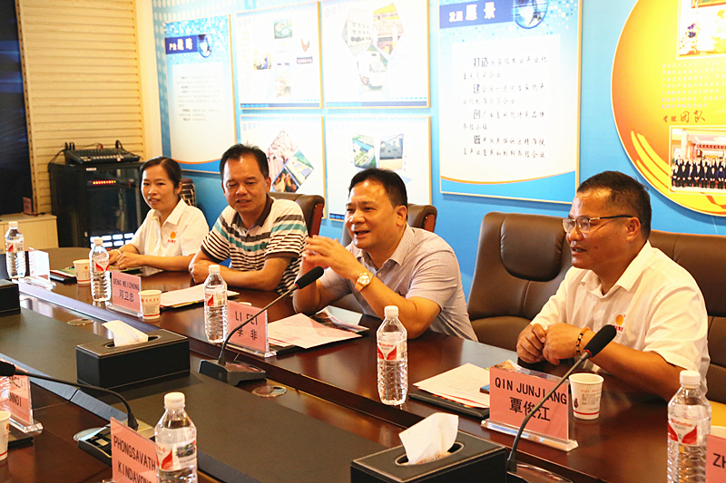 老挝中央工贸部及沙耶武里省工贸厅领导与广西成人看片APP农牧集团李非董事长及高层管理人员开展座谈交流。