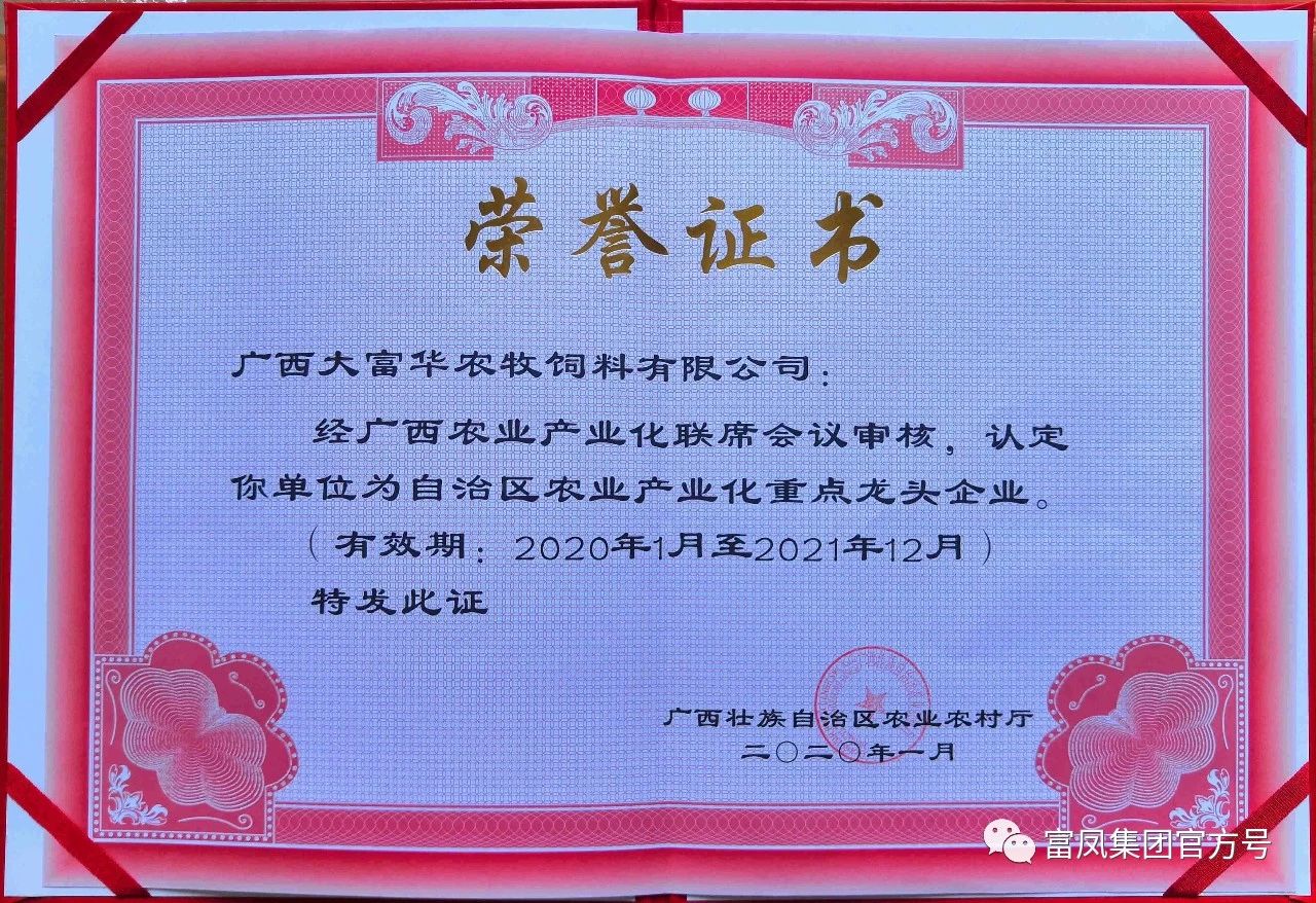 【概要描述】新年伊始,万象更新,在成人看片APP集团刚荣获农业产业化国家重点龙头企业之后集团全资子公司-广西大富华农牧成人手机看片你懂的有限公司先后荣获“国家高新技术企业”“广西农业产业化重点龙头企业”“自治区企业技术中心”等三项殊荣,成人看片APP集团三阳开泰,五福临门,喜讯连连,在此谨表示热烈祝贺!