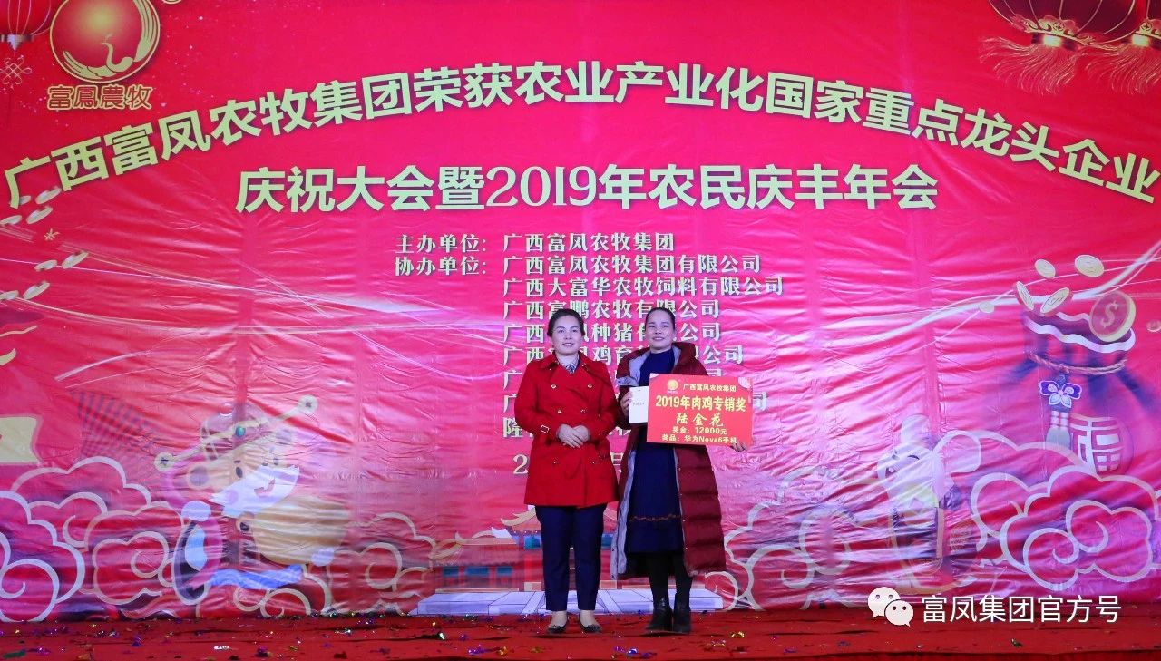 范丽容董事为2019年度成人看片APP肉鸡专销奖获得者陆金花颁发奖金及奖品