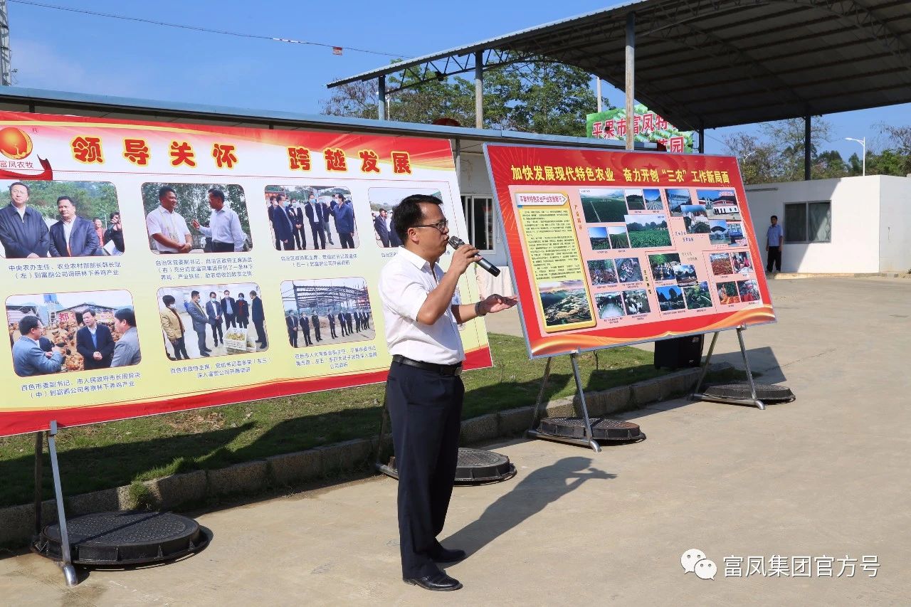 ▲韦宗海常务副总向参访嘉宾介绍成人看片APP集团概况以及广西富鹏农牧有限公司在平果市开展的产业扶贫成效。
