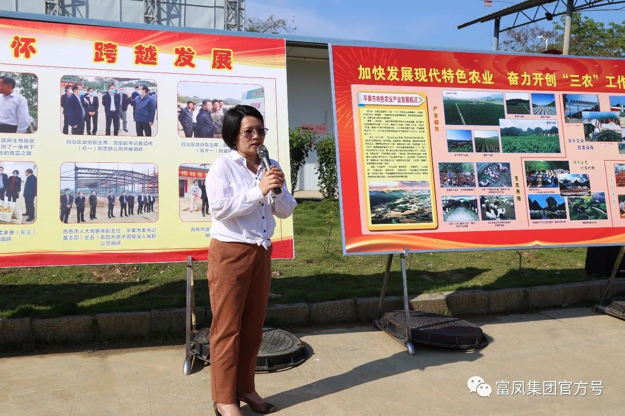 ▲平果市农业农村局黄红艳局长向参访嘉宾介绍平果市特色农业产业发展新成就