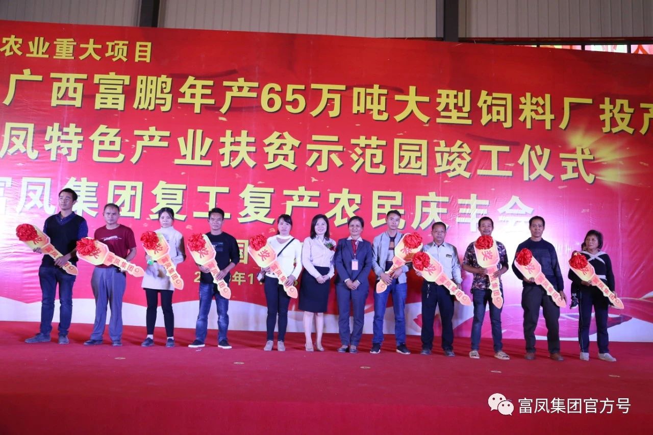 五谷飘香,清风送爽,1118日,承载着产业富民的成人看片APP集团广西富鹏农牧有限公司65万吨成人手机看片你懂的厂开业庆典暨成人看片APP特色扶贫产业园竣工、成人看片APP集团复工复产庆丰年会在这里隆重举行,一大早会场内彩旗飘扬,锣鼓喧天,雄狮狂舞,礼炮齐鸣,与成人看片APP集团合作伙伴、供应商、同行业公司等赠送的祝贺拱门、条幅,烘托整个会场的热烈气氛,四海宾朋欢声笑语,洋溢着欢乐的节日喜庆气氛。
