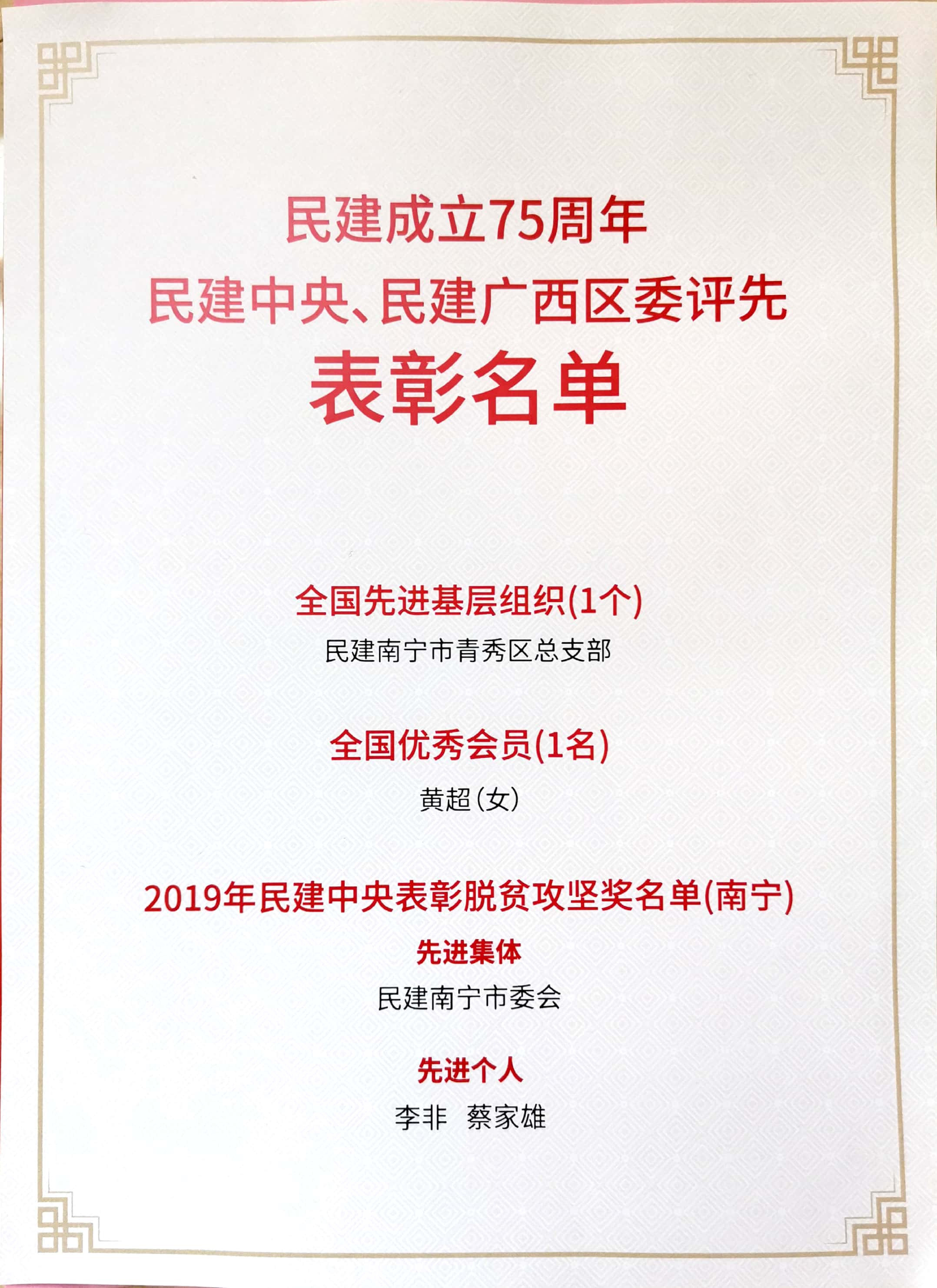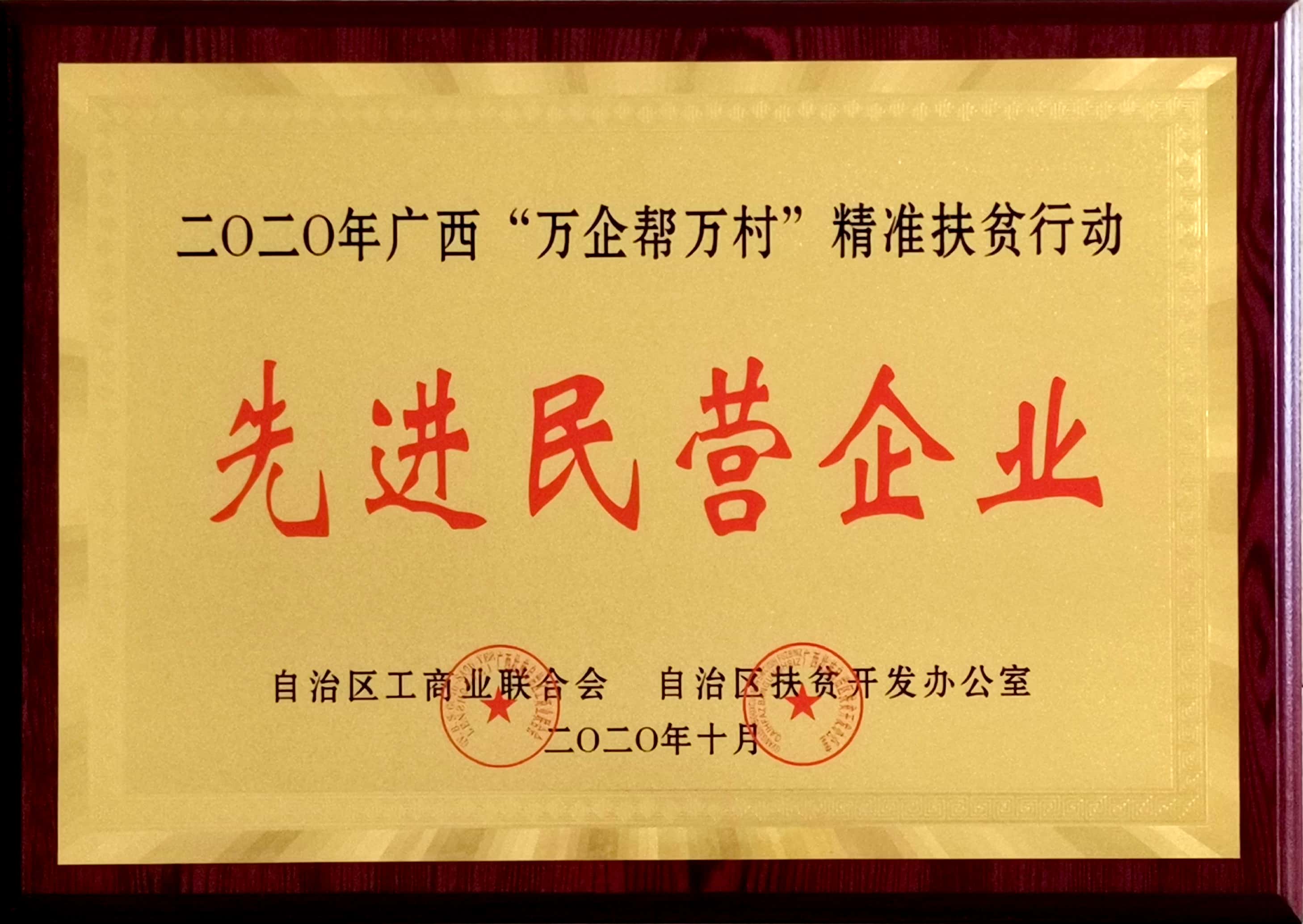 在李非董事长的带领下,集团公司荣获了“广西统一战线脱贫攻坚先进单位”、“2020年广西万企帮万村精准扶贫行动先进民营企业”、“爱心企业”、“2019年民建脱贫攻坚奖先进个人”等殊荣。